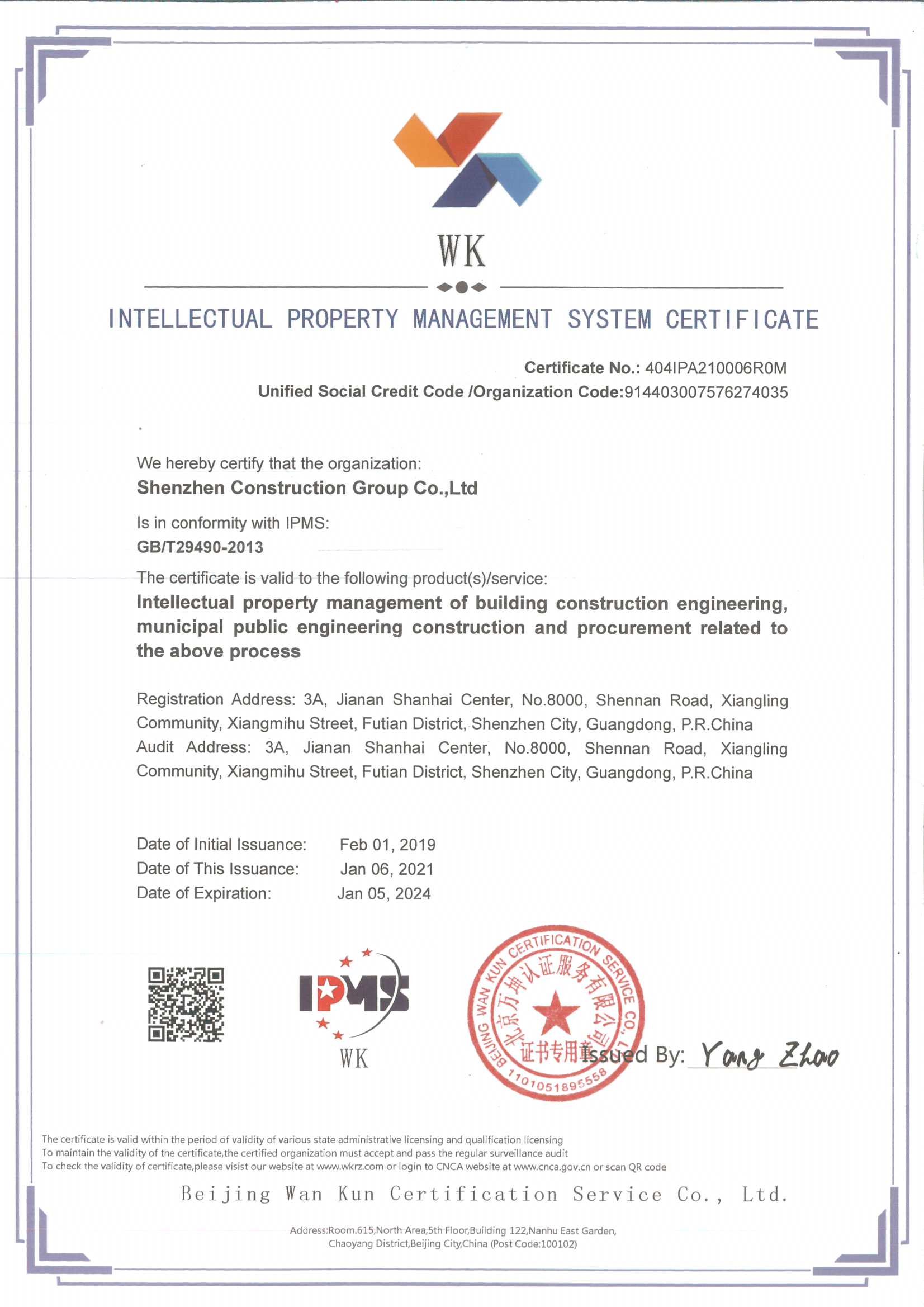 知識(shí)產(chǎn)權(quán)管理體系認(rèn)證證書(英文版)